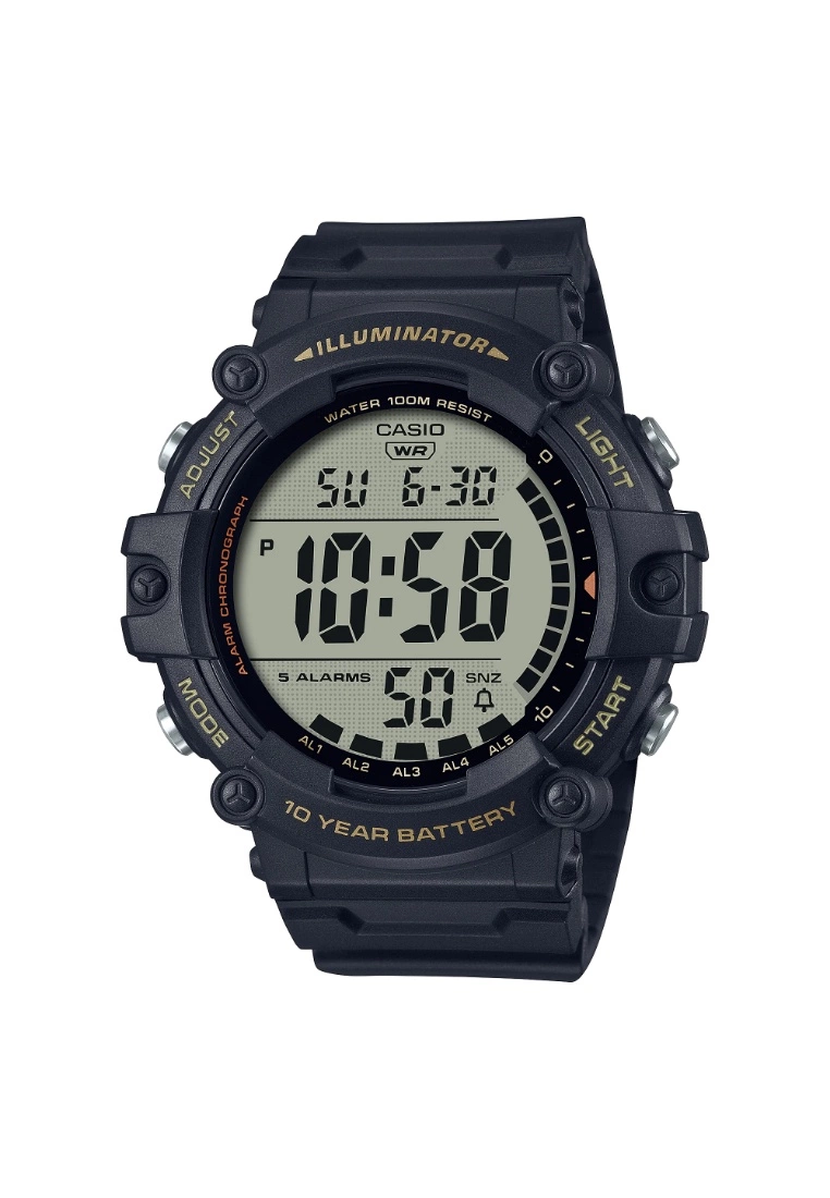 Glass: ResinCase Material: ResinCase Color: BlackStrap Material: ResinStrap Color: BlackInternational Warranty: 1 YearMovement: QuartzFunction: Digital, Day-Date Display, Light, AlarmLocal Warranty: 1 Year