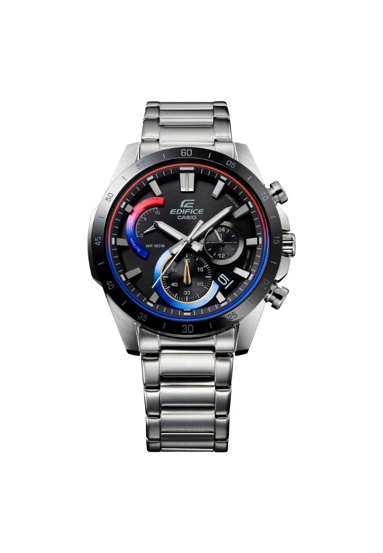 -Introducing the sports car enthusiast’s dream — a sporty chronograph with automotive detailing that radiates the look of pure heat.-From gold to red to blue, the beautiful color gradation of a titanium tail pipe as it heats up is captured throughout the timepiece, from the inset dial rings and glass edging to the hands.-Glass: Mineral Glass-Case Material: Stainless Steel-Case Color: Black-Strap Material: Stainless Steel-Movement: Quartz-Function: 3 Hands, Chronograph, Date-Local Warranty: 1 Year-Water Resistant: 100m-Style: Casual-Gender: Men-International Warranty: 1 Year-Case Size: 47.1mm