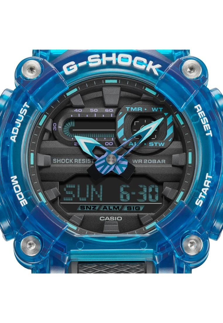 sturdy oversized case featuring analog hands and digital display.