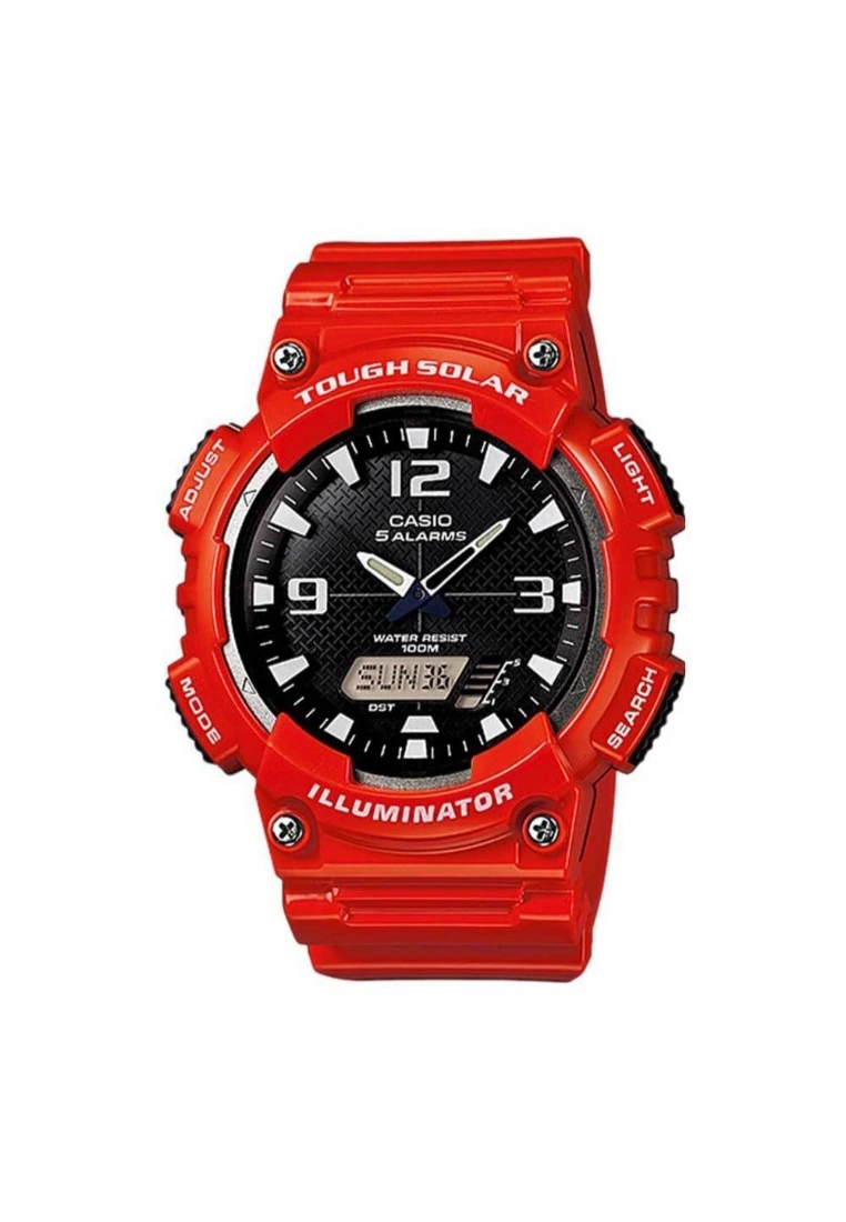 -Glass:Resin Glass-Case Material: Resin-Case Color: Red-Strap Material: Resin-Movement: Quartz-Function:Tough solar, World time, 1/100-second stopwatch, 5 alarms, LED light (LCD part only), Sporty design-Warranty: 1 Year