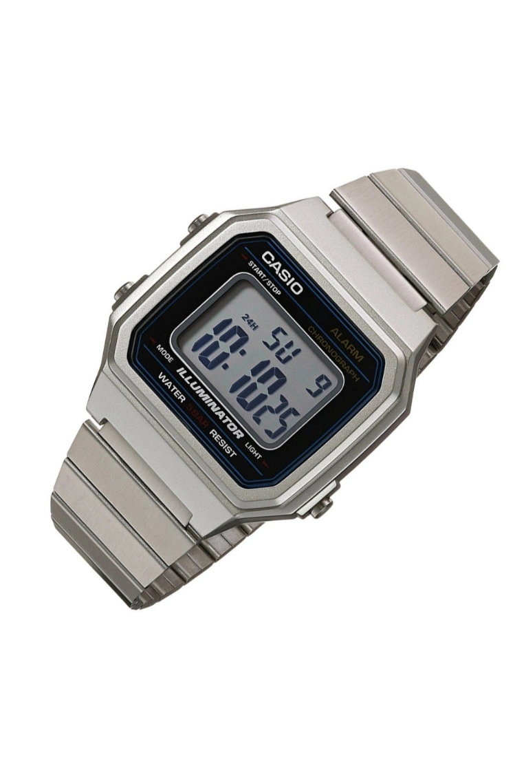 -Glass:Resin Glass-Case Material: Resin-Case Color: Silver-Strap Material: Stainless Steel-Movement: Digital Movement-Function:Large time digits, LED backlight, 1/100-second stopwatch, Daily alarm, Stainless steel band-Warranty: 1 Year