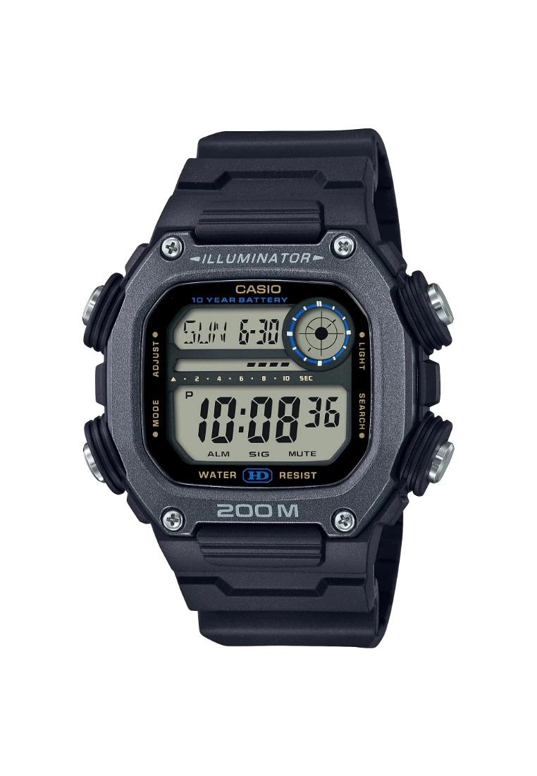 Glass: MineralCase Material: ResinCase Color: BlackStrap Material: ResinStrap Color: BlackInternational Warranty: 1 YearMovement: QuartzFunction: Digital, Day-Date Display, AlarmLocal Warranty: 1 Year