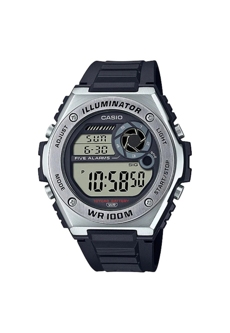 -Glass: Resin-Case Material: Resin-Case Color: Silver -Strap Material: Silicon-Movement: Quartz-Function: Digital, Multifunction-Warranty: 1 Year