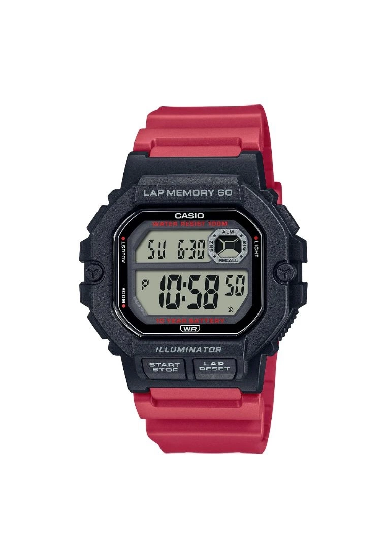 Glass: ResinCase Material: ResinCase Color: BlackStrap Material: ResinStrap Color: RedInternational Warranty: 1 YearMovement: QuartzFunction: Digital, MultifunctionLocal Warranty: 1 YearCase Size: 44.5mmWater Resistance: 100m