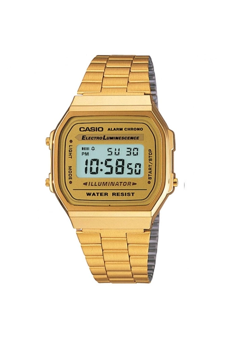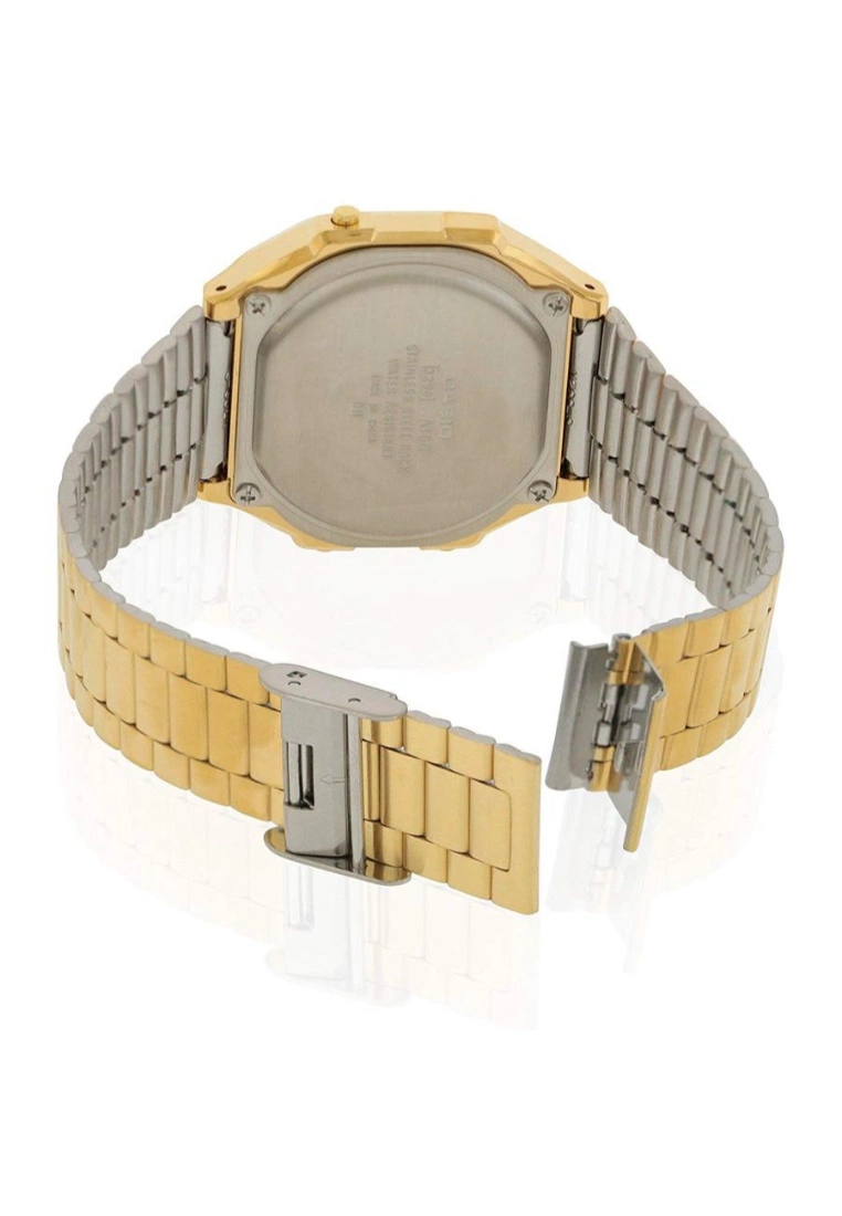 -Glass: Mineral Glass-Case Material : Stainless Steel-Case Color: Gold-Strap Material: Stainless Steel-Strap Color : Gold-Movement: Quartz-Function: Digital, Day & Date, LED Light, Alarm, Stop Watch, Auto Calendar-Warranty: 1 Year