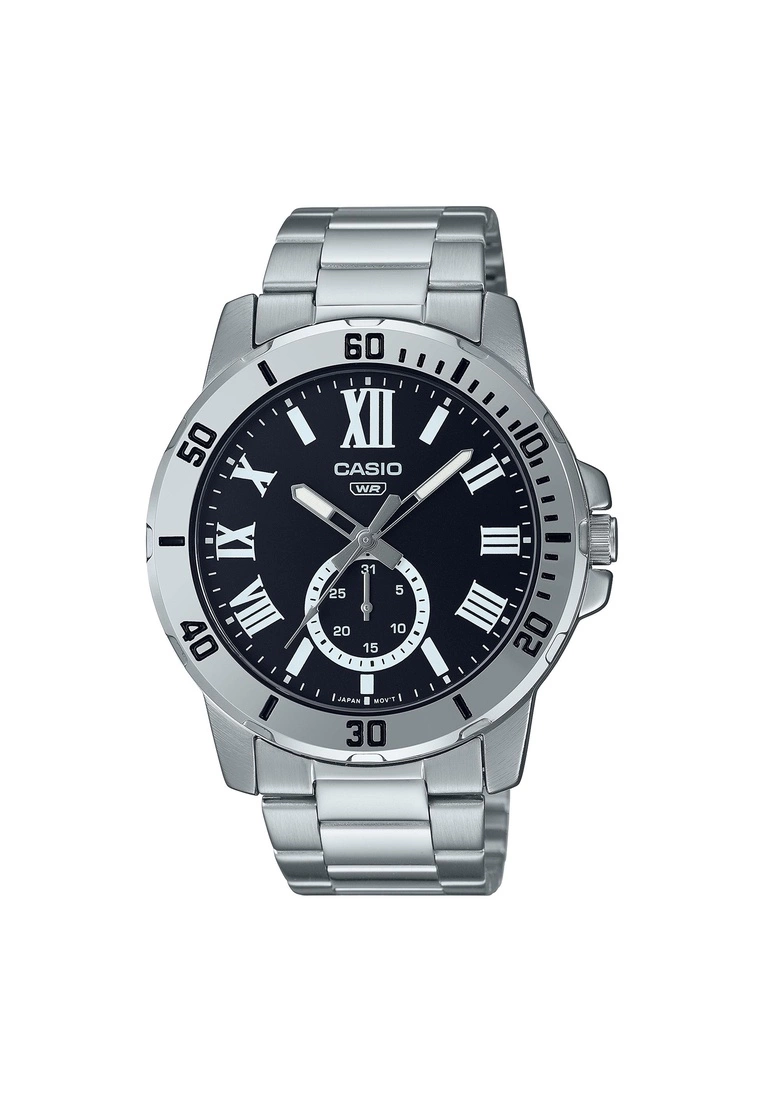 Casio Men’s Analog Watch MTP-VD200D-1B Silver Stainless Steel Band Watch for men