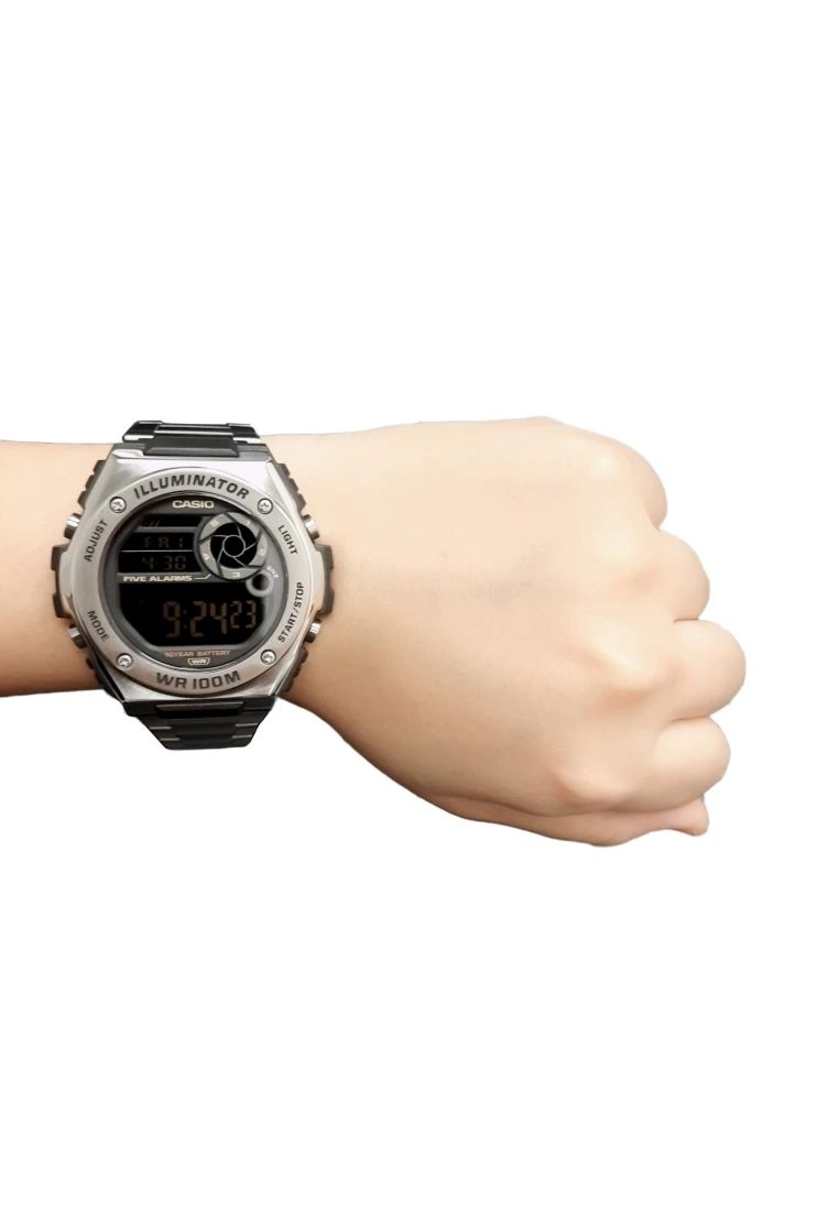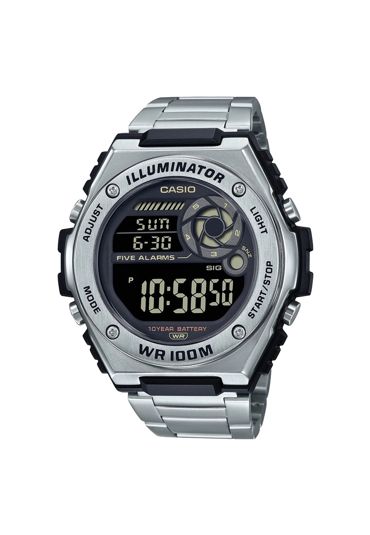 Casio Men’s Digital Watch MWD-100HD-1BV Silver Stainless Steel Band Watch for men